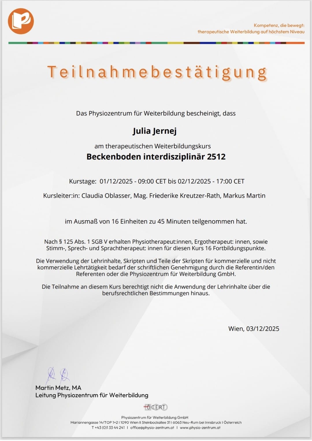 - Beckenboden interdisziplinär bei Physiozentrum in Wien